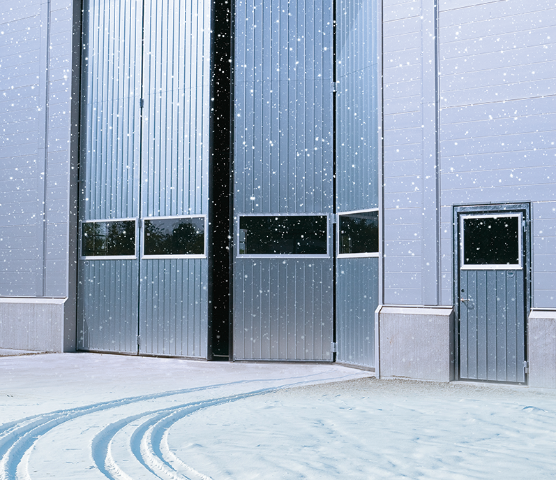 Används som gångdörr men även där du även behöver kunna komma in med större redskap eller mindre maskiner. Isolerade med möjlighet till fönster.